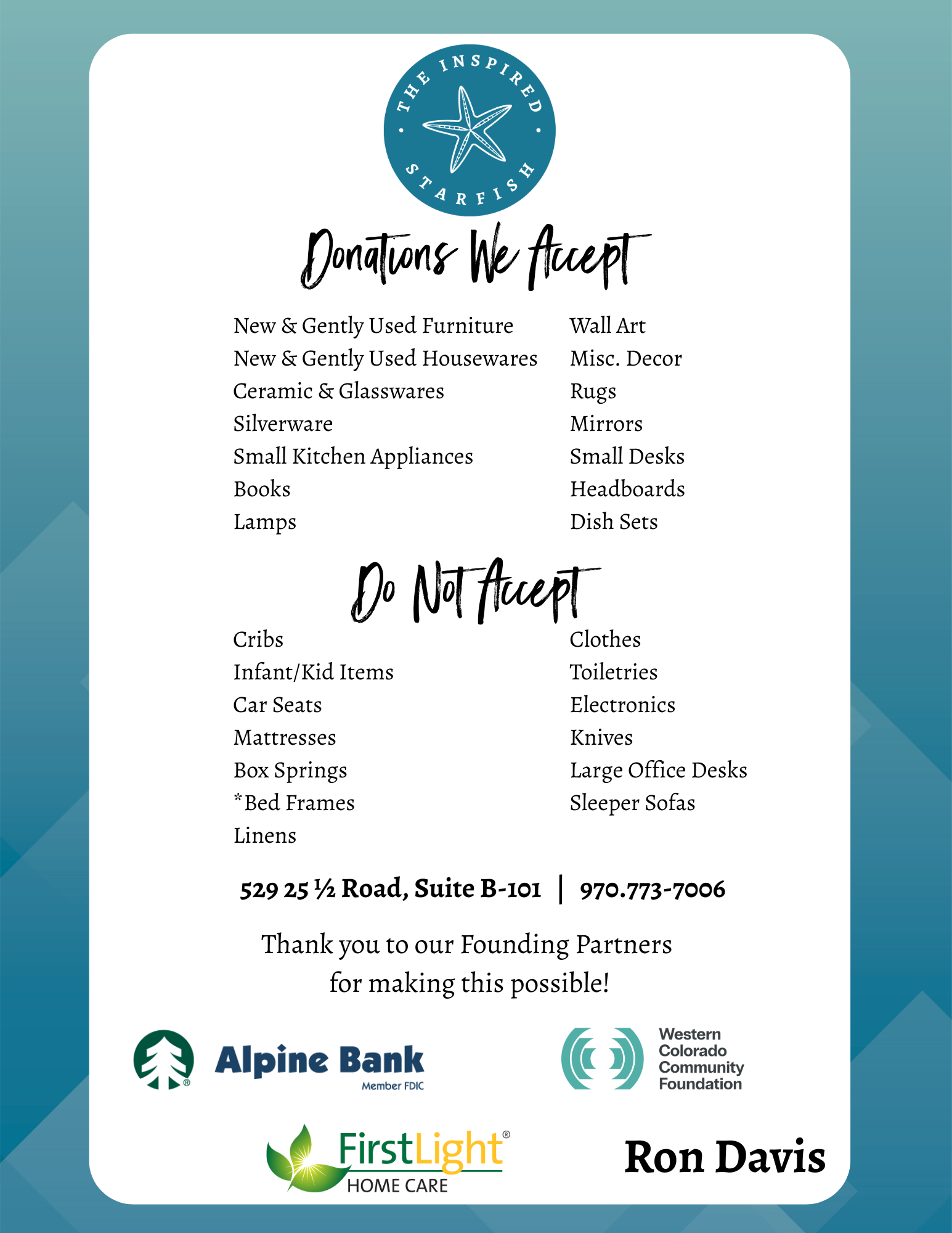 Come in and discover unique treasures while making a meaningful impact. Every item you purchase directly contributes to our mission of empowering foster alumni in Mesa County.